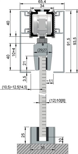 HELM-Abdeckkappen · bei kombinierter Verwendung der Laufschiene 140 mit 1 oder 2 Blende(n) für Glasschiebetüren gem. Abbildung · zum Aufklipsen · aus Modul Konzept 140 · (2 Stück) · Edelstahl-Effekt eloxiert Info: einseitig = 1 Blende auf einer Seite · beidseitig = Blenden auf beiden Seite · Weitere technische Eigenschaften Material: Aluminium • Einsatz: beidseitig