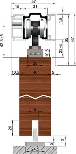 HELM-Abdeckkappen · bei kombinierter Verwendung der Laufschiene 60 mit dem Abstandsprofil und einer Blende für Holzschiebetüren gem. Abbildung · zum Aufklipsen · aus Modul Konzept 80 · (2 Stück) · Edelstahl-Effekt eloxiert · Weitere technische Eigenschaften Material: Aluminium