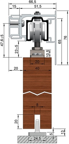 HELM-Abdeckkappen · bei kombinierter Verwendung der Laufschiene 60 mit dem Abstandsprofil, der Montageschiene 63 und einer Blende für Holzschiebetüren gem. Abbildung · zum Aufklipsen · aus Modul Konzept 80 · (2 Stück) · Edelstahl-Effekt eloxiert · Weitere technische Eigenschaften Material: Aluminium