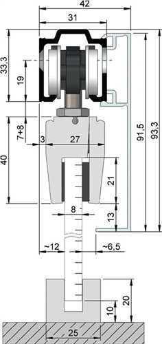 HELM-Abdeckkappen · bei kombinierter Verwendung der Laufschiene 60 mit 1 oder 2 Blende(n) für Glasschiebetüren gem. Abbildung · zum Aufklipsen · aus Modul Konzept 80 · (2 Stück) · Edelstahl-Effekt eloxiert Info: einseitig = 1 Blende auf einer Seite · beidseitig = Blenden auf beiden Seiten · Weitere technische Eigenschaften Material: Aluminium • Einsatz: einseitig