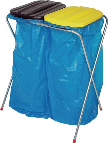 robustes, schlagfestes Stahlrohrgestell, Oberfläche galvanisch verzinkt · Kunststoffdeckel eckig mit Klemmring zur Sackbefestigung · Weitere technische Eigenschaften Deckelausführung: Kunststoff