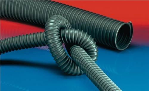 TPE Schlauch, mittelschwer (bis +150°C) Anwendungen: · flexibler Schlauch für heiße und kalte Gase und für Pulver, Schüttgut, Granulat · Granulattrockner/ Kunststofftrockner, Heißlufttrockner · Folienblasanlage, Kühlluft am Extrusionswerkzeug · Kühlluft: UV Trockner, IR/Infrarot Trockner · Textilindustrie, Dampfabsaugung: Dampfbügeleisen, Dampfbügelautomat, Bügelpresse · Bus, Nutzfahrzeug, Wohnwagen, Wohnmobil, Boot, Schiff, Yacht: Belüftung, Heizung · Verdichter/ Kompressor, Seitenkanalverdichter, Vakuumpumpe, Druckpumpe, Pumpe · Papierfabrik, Papierindustrie: Schmutzwasser, Abluft · Heizung: Frischluftzufuhr Eigenschaften: mittelschwere Ausführung · sehr gut hitzebeständig · gute Öl-, Benzin- und Chemikalienbeständigkeit · gute Laugen- und Säurenbeständigkeit · RoHS konform Temperaturbereich: · -40°C bis 125°C · kurzzeitig bis 150°C · Weitere technische Eigenschaften Biegeradius: 98mm • Gewicht: 1,290kg/m