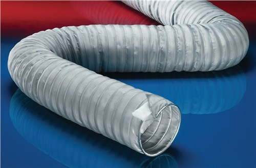 Anwendungen : flexibler Schlauch für heiße und kalte Gase, Abgasabsaugung, Absaugung von Motorabgasen: Abgasschlauchaufroller, Saugschlitzkanal, Überflurabsauganlage, Unterflurabsauganlage, Motorprüfstand, Abgasmessung, Hochtemperaturabsaugung: Ofen, Gießerei, Hochofen, Schmelze, Keramikindustrie, Glasindustrie, Stahlwerk, Aluminiumhütte, Faltenbalg, Kompensator Eigenschaften : sehr gut bei Funkenflug und Schweißspritzern, zugfeste Verklemmung der Wandung im Klemmprofil, isolierend, geeignet für leichten Überdruck, sehr gut hitzebeständig, RoHS konform Konstruktion : 1. Klemmprofil-Stützwendel: Stahl verzinkt, 2. mehrlagige Schlauchwandung, Wandung: innen und außen spezialbeschichtetes Glasgewebe, Thermo Isolationsgewebe, 3. spezielle Thermo-Isolationsschicht Temperaturbereich : -60°C bis 650°C, kurzzeitig bis 700°C Liefervarianten : weitere Ausführungen, Abmessungen und Längen auf Anfrage lieferbar · Weitere technische Eigenschaften Biegeradius: 84mm