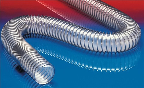 Lebensmittelschlauch und Pharmaschlauch, superleicht Anwendungen: · flexibler Schlauch für Gase und für abrasive Stäube, Pulver, Fasern · Lebensmittelindustrie, Pharmaindustrie: Lebensmittel, Pharmazeutika · Förderung von z.B. Reis, trockene Lebensmittel, Getreideprodukte, Zucker, Milchpulver, Pulver, Kaffee, Tee, Getreide, Mehl, gefrorene Lebensmittel · Mischer, Trockner, Verpackungsmaschine, Big-Bag Befüllung und Entleerung, Mühle · Faltenbalg, Kompensator Eigenschaften: Scheuerschutz durch äußeres Klemmprofil · zugfeste Verklemmung der Wandung im Klemmprofil · hochflexibel + stauchbar 5:1 · abriebfest · Wandung lebensmittelecht nach: EU-Verordnung 10/2011 und der neuesten Verordnung 2015/174, FDA 21 CFR 177.2600 · geruchs- und geschmacksfrei · mikroben- und hydrolysefest · gute Öl-, Benzin- und Chemikalienbeständigkeit · sehr gute Kälteflexibilität · RoHS konform Temperaturbereich: · -40°C bis 90°C · kurzzeitig bis 125°C