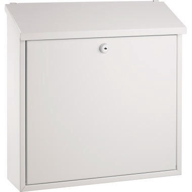 Modern und geräumig. Mit aufklappbarem Regendach. Drehzylinderschloss mit 2 Schlüsseln. · Zeitungsfach vorhanden: Nein · Werkstoff: Stahl, lackiert · Sichtfenster vorhanden: Nein · Maße: 36 x 36 x 10 cm (B x H x T) · Ausführung der Lieferzusammenstellung: inkl. Befestigungsmaterial · Farbe: weiß