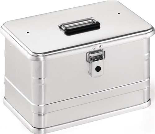 ideal für den Transport von empfindlichen und schweren Produkten wie Werkzeuge, Fotogeräte usw. · sehr robuste Transportboxen aus 1 mm starkem Aluminiumblech · leicht, stabil und formbeständig durch umlaufende Sicken · korrosions-, witterungs- und temperaturbeständig · umlaufende Gummidichtung im Kastenprofil zum Schutz vor Staub und Wasser · stabiler Klappdeckel mit Fangbändern, verhindern ein Ausreißen der Scharniere · selbsteinklappende Sicherheitshandgriffe kunststoffummantelt für bequemen Transport · stabile Klapphebelspannverschlüsse mit Bohrungen für Vorhängeschloss oder Plombenverschluss und vorbereitet für die Montage von Zylinderschlössern (siehe Zubehör) · Weitere technische Eigenschaften Innenhöhe: 245mm • Innenlänge: 400mm • Innenbreite: 300mm