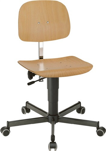 nach DIN 68 877 · bedienungsfreundliche Gasfeder-Sitzhöhenverstellung · ergonomisch geformte Rückenlehne, pendelnd gelagert in Höhe und Neigung stufenlos einstellbar · Sitz und Rückenlehne mit köpergerecht geformten, mehrfach verleimtem Buchenschichtholz , naturfarben lackiert · kipppsicheres Fünffuß-Untergestell aus Profilstahlrohr, epoxydharzbeschichtet, anthrazit mit lastabhängig gebremsten Sicherheits-Doppelrollen für harte Böden · Weitere technische Eigenschaften Modellbezeichnung: 9438/K/3000
