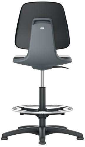 nach DIN 68877 · bedienungsfreundliche Gasfeder-Sitzhöhenverstellung · ergonomisch geformter Sitz und Rückenlehne mit robustem Integralschaumpolster beständig gegen leichte Säuren und Laugen, leicht abwaschbar · Rückenlehne mit 3D-Flexfunktion passt sich den Bewegungen des Nutzers an · Fünffuß-Untergestell aus Kunststoff, flach auslaufend, kipp- und stolpersicher · Untergestell mit abriebfesten Kunststoff-Bodengleitern und höhenverstellbarem Fußring für erhöhte Sitzposition · Weitere technische Eigenschaften Modellbezeichnung: Labsit