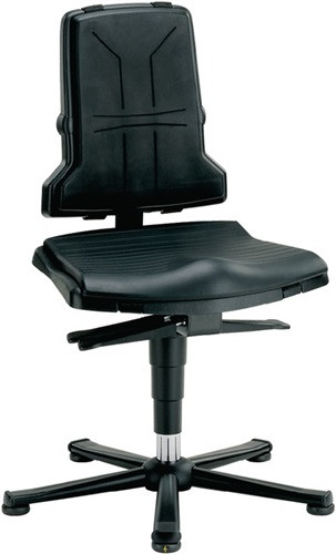elektrisch ableitfähige ESD-Ausstattung geprüft nach DIN EN 61340 (Ableit- und Oberflächenwiderstand) · Durchgangswiderstand 10⁴-10³ Ω nach DIN 68877 · bedienungsfreundliche Gasfeder-Sitzhöhenverstellung · Sitz und Rückenlehne aus bruch- und stoßfestem Kunststoff (Polypropylen) · Kontaktrückenlehne passt sich in der Neigung federunterstützt der jeweiligen Sitzhaltung an, oder ist wahlweise in jeder Position fixierbar · Rückenlehnen-Höhenverstellung mit Höheneinstellskala · Sitzneigungsverstellung für überwiegend vorgeneigte Arbeitshaltung · Fünffuß-Untergestell aus Profilstahl, flach auslaufend, kipp- und stolpersicher · Stahl- und Kunststoffteile basaltgrau, RAL 7012 alle Stuhlteile sind voll recyclebar · Untergestell mit abriebfesten Kunststoff-Bodengleitern · Weitere technische Eigenschaften Modellbezeichnung: 9810E-1100