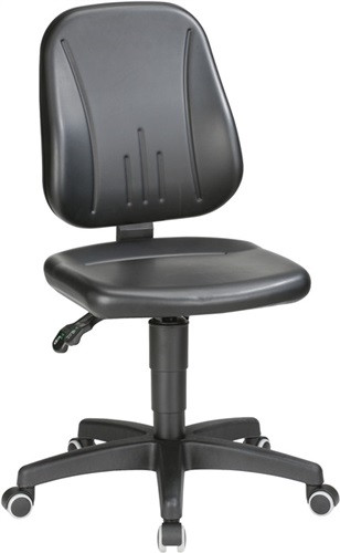 nach DIN 68877 · bedienungsfreundliche Gasfeder-Sitzhöhenverstellung · ergonomisch geformter Sitz und Rückenlehne mit robustem, feinstrukturierten Kunstlederbezug , leicht abwaschbar · Rückenlehne pendelnd gelagert mit stufenloser Neigungsverstellung und 10-facher Höhenverstellung · Fünffuß-Untergestell aus Kunststoff, flach auslaufend, kipp- und stolpersicher · Untergestell mit lastabhängig gebremsten Sicherheits-Doppelrollen für harte Boden · Weitere technische Eigenschaften Modellbezeichnung: 9653-551