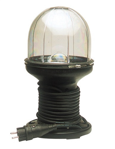 mit integrierter Kabeltrommel und ausklappbarem Haken im Fuß · Gehäuse aus Gummi · bruchfeste Polycarbonatglocke · betriebsbereit · für den Einsatz im Freien zugelassen für den robusten Baustellenbetrieb geeignet · Weitere technische Eigenschaften Energieeffizienzklasse: E