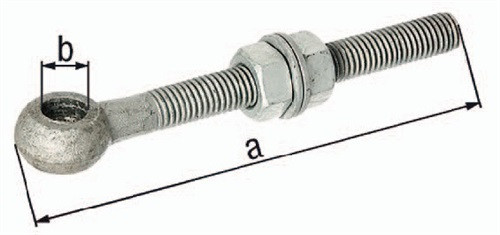 passend zu Torbändern Nr. 411121 ff.· Material: Stahl roh, Oberfläche: feuerverzinkt · Weitere technische Eigenschaften Oberfläche: verzinkt • Maß b Ø: 16mm • Maß a: 130mm