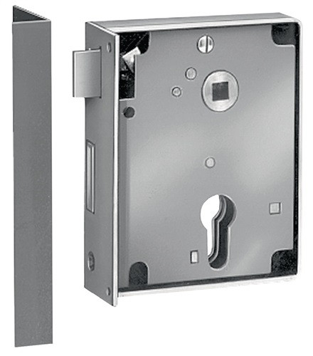 schwere Ausführung · verzinkt · schießende Falle · Falle nicht umdrehbar · Dornmaß 60 mm · Nuss 8 mm · Kastenbreite 100 mm · 2-tourig · Entfernung 55,3 mm · Schließung: PZ, mit Wechsel · BB mit Nachrüstsatz · Zubehör: · Schließblech · Weitere technische Eigenschaften Oberfläche: verzinkt • Nuss: 8mm • Material: Stahl
