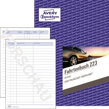 Wer auf der sicheren Seite sein will, greift zum Fahrtenbuch von Avery Zweckform. Das Fahrtenbuch dient dem steuerlichen km-Nachweis und zur Vorlage beim Finanzamt. Alle relevanten Information werden abgefragt. Das gebundene Formularbuch wird vom Finzanzamt problemlos anerkannt. Das Fahrtenbuch beinhaltet zusätzlich eine Jahresabrechnung und passt dank DIN A5 Format in das Handschuhfach. Die Fahrtenbücher werden regelmäßig von Rechtsexperten überprüft und aktualisiert. · Forest Stewardship Council (FSC): Ja · Zeilennummerierung vorhanden: Nein · selbstdurchschreibend: Nein · Seitenzahl vorhanden: Nein · Material des Einbandes: Karton · Papierformat: DIN A5 · Farbe des Einbandes: blau · Farbe: weiß · Ausführung des Papiertyps: chlorfrei gebleicht · Ausführung der Lieferzusammenstellung: inkl. steuerl. km-Nachweis, Jahresabrechnung · Ausführung der Bindung: Drahtbindung · Anzahl der Seiten (Spaltenschema): 2 Seiten · Anzahl der Blätter: 40 Bl. · Produktverwendung: PKW