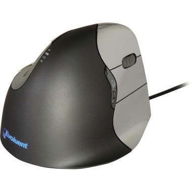 Die vertikale Maus Evoluent 4 sorgt für eine bequeme Haltung der Hand. Gesunde Haltung von Arm und Handgelenk. Schnell und sehr präzise. Kurze Eingewöhnungszeit. Verbesseter Griff für Daumen und Zeigefinger. Einstellung der Mausgeschwindigkeit möglich. · Kabellänge: 2,1 m · Systemanforderung: Windows® XP, Vista, 7, 8, 10, Mac OS X 10.5 · optische Auflösung: 800/1.300/1.800/2.600 · Anzahl der Tasten: 6 Tasten · Masse (Gewicht): 140 g · geeignet für Händigkeit: Rechtshänder · Farbe: schwarz/silber · Art des Anschlusses: USB · Maße: 11,7 x 8,6 x 7,6 cm (B x H x T)