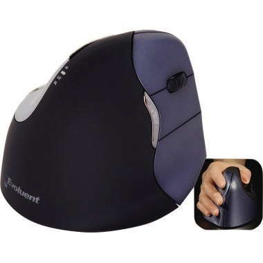 Die vertikale Maus Evoluent 4 sorgt für eine bequeme Haltung der Hand. Schnell und sehr präzise. Kurze Eingewöhnungszeit. Verbesserter Griff für Daumen und Zeigefinger. Einstellung der Mausgeschwindigkeit möglich. · Systemanforderung: Windows® XP, Vista, 7, 8, 10, Mac OS X 10.5 · Masse (Gewicht): 195 g · Verwendung mit Batterie: Mignon/AA · Reichweite: 5 m · optische Auflösung: 800/1.300/1.800/2.600 dpi · Maße: 11,4 x 8,3 x 7,9 cm (B x H x T) · Farbe: schwarz/blau · Batterien im Lieferumfang enthalten: Ja · Art des Anschlusses: USB · Anzahl der Tasten: 6 Tasten · Anzahl der Batterien/Akkus: 1 Batterie · geeignet für Händigkeit: Rechtshänder