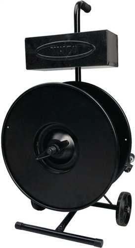 für Umreifungsbänder mit Innenkern-Ø 76 mm · fahrbar für den mobilen oder stationären Einsatz · mit Ablageschale für Verschlussklemmen und Spanngerät