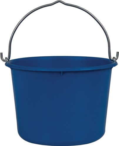 aus hochfestem Polyethylen · blau · verzinkter Metallösenbügel 6 mm · niedriger Standrand · Liter-Skala · Weitere technische Eigenschaften Material: Polyethylen