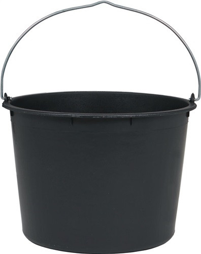 aus hochwertigem Polyethylen-Regeneratgemisch für das Bauhandwerk · recyclebar · schwarz · verzinkter Bügel 5 mm · Liter-Skala · Weitere technische Eigenschaften Material: Polyethylen-Regeneratgemisch • Höhe: 280mm • Innen-Ø: 370mm
