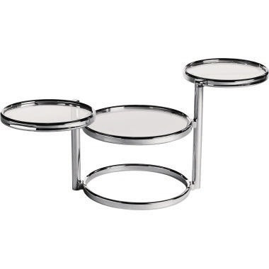 Mit einer festen und zwei schwenkbaren Ablagen. · Maße: 580 x 440 x 500 mm (B x H x T) · Forest Stewardship Council (FSC): Nein · Werkstoff des Gestells: Metall, verchromt · Material der Platte: Sicherheitsglas · höhenverstellbar: Nein · Farbe der Tischplatte: transparent · Farbe des Gestells: chrom · Masse (Gewicht): 10 kg