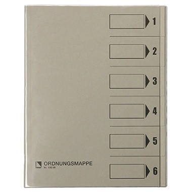 Zum Ordnen und Sortieren von Unterlagen. Mit 3 Sichtlöchern und Schutzumschlag. · Grammatur: 250 g/m² · Verwendung für Papierformat: DIN A4 · Material des Einbandes: PVC · Maße: 24,4 x 31,2 cm (B x H) · Farbe: grau · Beschriftungsfeld vorhanden: Ja · Anzahl der Fächer: 6 Fächer · Ausführung der Tabe: blanko