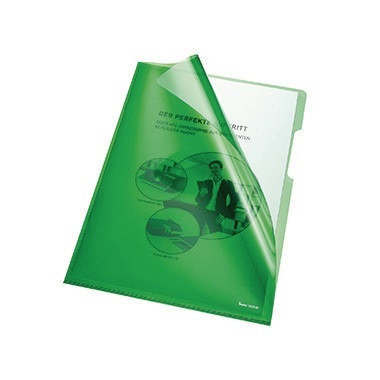 Zum Schutz von Unterlagen. Mit Greifausschnitt zum leichteren Entnehmen und Einlegen von Dokumenten, mit Kantenklebung. · Farbe: grün · Werkstoff: PVC/Hartfolie · Verwendung für Papierformat: DIN A4 · Packungsmenge: 100 St./Pack. · Maße: 22 x 31 cm (B x H) · Kantenschweißnaht vorhanden: Nein · Kantenklebung vorhanden: Ja · Einreißschutz vorhanden: Nein · dokumentenecht: Ja · Dicke der Folie: 0,15 mm · Ausführung der Oberflächenbeschaffenheit: glänzend · antistatisch vorhanden: Nein · Anordnung der Lage (Zugriffsseite): oben, rechts offen · Greifausschnitt vorhanden: Ja · Hüllen strapazierfähig: Nein