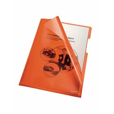 Zum Schutz von Unterlagen. Mit Greifausschnitt zum leichteren Entnehmen und Einlegen von Dokumenten, mit Kantenklebung. · Packungsmenge: 100 St./Pack. · Verwendung für Papierformat: DIN A4 · Maße: 22 x 31 cm (B x H) · Kantenschweißnaht vorhanden: Nein · Kantenklebung vorhanden: Ja · Hüllen strapazierfähig: Nein · Greifausschnitt vorhanden: Ja · Einreißschutz vorhanden: Nein · dokumentenecht: Ja · Dicke der Folie: 0,15 mm · Ausführung der Oberflächenbeschaffenheit: glänzend · antistatisch vorhanden: Nein · Anordnung der Lage (Zugriffsseite): oben, rechts offen · Werkstoff: PVC/Hartfolie · Farbe: orange