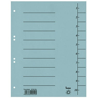 Die Taben können in verschiedenen Längen ausgeschnitten werden. · Farbe: blau · Werkstoff: Karton · Verwendung für Papierformat: DIN A4 · Maße: 23,5 x 30 cm (B x H) · Linienaufdruck vorhanden: Ja · Grammatur: 250 g/m² · Breite: 235 mm · Ausführung der Tabe: blanko · Ausführung der Lochung: Universallochung · Anzahl der Tabe: 10 Taben · Höhe: 300 mm