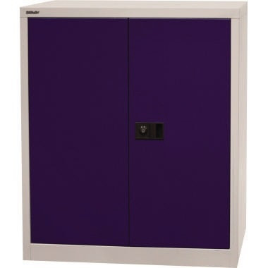 Bisleys Flügeltürenschrank Universal ist ein Allroundtalent. Im platzsparenden Slimline-Design und mit komplett geschweißtem Korpus bietet er viel Platz. Attraktive Strukturlackierung. Der Klappgriff mit Schloss verriegelt die Flügeltüren über einen Dreipunkt-Schließmechanismus. · Farbe des Griffes: schwarz · Werkstoff: Stahl · Werkstoff des Fachbodens: Metall · Schließung vorhanden: Ja · max. Öffnungswinkel: 125 ° · Maße: 91,4 x 100 x 40 cm (B x H x T) · Garantiedauer: 5 Jahre · Anzahl der Fachböden: 1 Fachboden · Farbe des Korpus: lichtgrau · Farbe der Front: oxfordblau · Bezeichnung der Oberflächenbeschichtung: Strukturlackierung · Ausführung der Lieferzusammenstellung: inkl. 2 Schlüssel · Anzahl der Ordnerhöhen: 2 Ordnerhöhen · Garantie gewährt: Ja