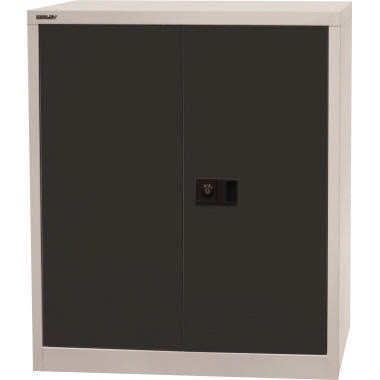 Bisleys Flügeltürenschrank Universal ist ein Allroundtalent. Im platzsparenden Slimline-Design und mit komplett geschweißtem Korpus bietet er viel Platz. Attraktive Strukturlackierung. Der Klappgriff mit Schloss verriegelt die Flügeltüren über einen Dreipunkt-Schließmechanismus. · Garantie gewährt: Ja · Werkstoff: Stahl · Werkstoff des Fachbodens: Metall · Schließung vorhanden: Ja · max. Öffnungswinkel: 125 ° · Maße: 91,4 x 100 x 40 cm (B x H x T) · Garantiedauer: 5 Jahre · Farbe des Korpus: lichtgrau · Farbe des Griffes: schwarz · Farbe der Front: anthrazitgrau · Bezeichnung der Oberflächenbeschichtung: Strukturlackierung · Ausführung der Lieferzusammenstellung: inkl. 2 Schlüssel · Anzahl der Fachböden: 1 Fachboden · Anzahl der Ordnerhöhen: 2 Ordnerhöhen
