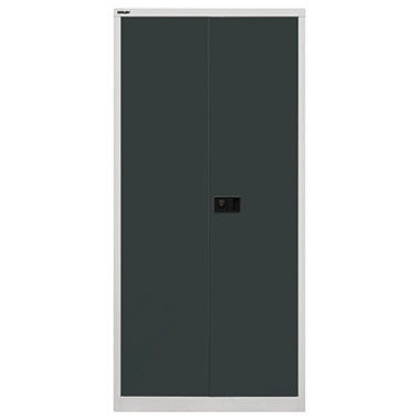 Der Bisley Universal Aktenschrank ist ein wahres Raumwunder! Durch das Slimline Design werden Platz und Raum optimal genutzt. Da er sich auch durch die Präzisionsfertigung und hoch belastbare Einlegeböden auszeichnet, ist er gleichermaßen für die Aufbewahrung von vielen anderen Gegenständen z. B. Werkzeug, Papier, Kleinteilboxen etc. sehr gut geeignet. Die Einlegeböden werden bereits mitgeliefert und können im Raster selbst höhenverstellt werden. Robuster, geschweißter Korpus und zusätzlich verstärkte Türen. · Garantiedauer: 5 Jahre · Garantie gewährt: Ja · Werkstoff: Stahl · Werkstoff des Fachbodens: Metall, lackiert · Schließung vorhanden: Ja · Anzahl der Fachböden: 4 Fachböden · Farbe des Griffes: schwarz · Maße: 91,4 x 195 x 40 cm (B x H x T) · Farbe der Front: anthrazitgrau · Bezeichnung der Oberflächenbeschichtung: Strukturlackierung · Anzahl der Ordnerhöhen: 5 Ordnerhöhen · Farbe des Korpus: lichtgrau