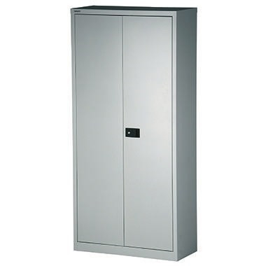 Bisleys Flügeltürenschrank Universal ist ein Allroundtalent. Platzsparendes Slimline-Design mit komplett geschweißtem Korpus und schwarz lackierten Fachböden. Der Klappgriff mit Schloss verriegelt die Flügeltüren über einen Dreipunkt-Schließmechanismus. · Farbe des Korpus: silber · Garantiedauer: 5 Jahre · Maße: 60 x 195 x 40 cm (B x H x T) · Werkstoff: Stahl · Garantie gewährt: Ja · Farbe: silber · Farbe der Front: silber · Bezeichnung der Oberflächenbeschichtung: lackiert · Art der Gestelloberfläche: lackiert · Anzahl der Ordnerhöhen: 5 Ordnerhöhen · Anzahl der Fachböden: 4 Fachböden · Schließung vorhanden: Ja · Farbe des Griffes: schwarz