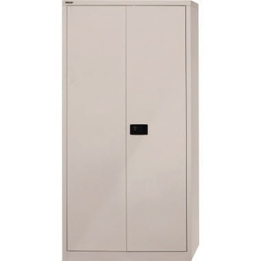 Der Bisley Universal Aktenschrank ist ein wahres Raumwunder! Durch das Slimline Design werden Platz und Raum optimal genutzt. Da er sich auch durch die Präzisionsfertigung und hoch belastbare Einlegeböden auszeichnet, ist er gleichermaßen für die Aufbewahrung von vielen anderen Gegenständen z. B. Werkzeug, Papier, Kleinteilboxen etc. sehr gut geeignet. Bei diesem Flügeltürenschrank ist bereits ein Garderobeneinsatz verbaut. So können Sie Ihre Kleidung sowie Aktenordner in nur einem Schrank verstauen. · Farbe: lichtgrau · Schließung vorhanden: Ja · Maße: 91,4 x 195 x 40 cm (B x H x T) · Werkstoff: Stahl · Garantie gewährt: Ja · Bezeichnung der Oberflächenbeschichtung: lackiert · Anzahl der Ordnerhöhen: 4 Ordnerhöhen · Anzahl der Fachböden: 3 Fachböden · Farbe des Griffes: schwarz · Garantiedauer: 5 Jahre