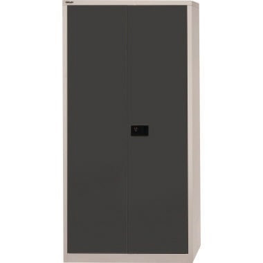 Der Bisley Universal Aktenschrank ist ein wahres Raumwunder! Durch das Slimline Design werden Platz und Raum optimal genutzt. Da er sich auch durch die Präzisionsfertigung und hoch belastbare Einlegeböden auszeichnet, ist er gleichermaßen für die Aufbewahrung von vielen anderen Gegenständen z. B. Werkzeug, Papier, Kleinteilboxen etc. sehr gut geeignet. Bei diesem Flügeltürenschrank ist bereits ein Garderobeneinsatz verbaut. So können Sie Ihre Kleidung sowie Aktenordner in nur einem Schrank verstauen. · Garantie gewährt: Ja · Farbe des Korpus: lichtgrau · Schließung vorhanden: Ja · Garantiedauer: 5 Jahre · Werkstoff: Stahl · Farbe der Front: anthrazitgrau · Bezeichnung der Oberflächenbeschichtung: lackiert · Anzahl der Ordnerhöhen: 4 Ordnerhöhen · Anzahl der Fachböden: 3 Fachböden · Maße: 91,4 x 195 x 40 cm (B x H x T) · Farbe des Griffes: schwarz