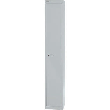 Bisley Garderobenschrank Office. 1 Hutfachboden und 1 fixierter Kleiderhaken unter dem Fachboden. Glatte Oberfläche ohne vorstehende Kanten. Etikettenhalter. Belüftungslöcher an Ober- und Unterseite. Leichter Schließvorgang. 200 unterschiedliche Schlossnummern. Mehrere Spinde können miteinander verbunden werden. · Anzahl der Fachböden: 1 Fachboden · Masse (Gewicht): 19,36 kg · Werkstoff: Stahl · Tragfähigkeit des Fachbodens: 12 kg · Tiefe: 305 mm · Schließung vorhanden: Ja · Maße: 30,5 x 180,2 x 30,5 cm (B x H x T) · Garantie gewährt: Ja · Farbe: lichtgrau · Anzahl der Abteile: 1 Abteil · Anzahl der Fächer: 1 Fach · Garantiedauer: 5 Jahre · Ausführung der Lieferzusammenstellung: inkl. Hutboden und fixiertem Kleiderhaken