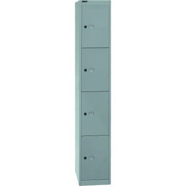 Bisleys Schließfachschrank Office im klassisch-zeitlosen Design schafft mit einzeln abschließbaren Fächern Platz für die Ablage persönlicher Gegenstände. Die Türen der Fächer sind mit einem Etikettenhalter und einem Zylinderschloss ausgestattet. Löcher an der Korpusoberseite sorgen für Belüftung. Die Schränke können miteinander verbunden werden, somit ergeben sich zahlreiche Variationsmöglichkeiten. · Garantie gewährt: Ja · Werkstoff: Stahl · Tragfähigkeit des Fachbodens: 12 kg · Tiefe: 457 mm · Schließung vorhanden: Ja · Maße: 30,5 x 180,2 x 45,7 cm (B x H x T) · Anzahl der Abteile: 1 Abteil · Garantiedauer: 5 Jahre · Farbe: silber · Anzahl der Fächer: 4 Fächer · Anzahl der Fachböden: 4 Fachböden · Masse (Gewicht): 25,92 kg