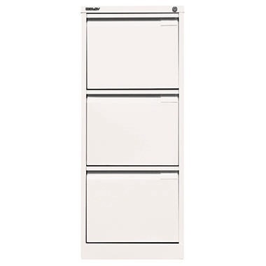 Bisley - das Original. Die Schubladen laufen leise auf kugelgelagerten Schienen und sind mit einem geschlossenen Boden und Doppelauszugssperre ausgestattet. Der 100 % Auszug gewährt Zugang zum gesamten Schubladeninhalt, der sich durch die in der Griffleiste integrierten Etikettenfenster einfach identifizieren lässt. · Farbe: verkehrsweiß · Verwendung für Papierformat: DIN A4 · Tragfähigkeit der Schublade: 35 kg · Schließung vorhanden: Ja · Maße: 41,3 x 101,6 x 62,2 cm (B x H x T) · Garantiedauer: 10 Jahre · Form des Griffes: Griffmulde · Werkstoff: Stahl · Auszugsperre vorhanden: Ja · Art des Auszuges: Vollauszug · Art der Schubladenführung: Kugelgelagert · Anzahl der Hängeregistraturen: 3 Hängeregistraturen · Anzahl der Bahnen: 1-bahnig · Garantie gewährt: Ja