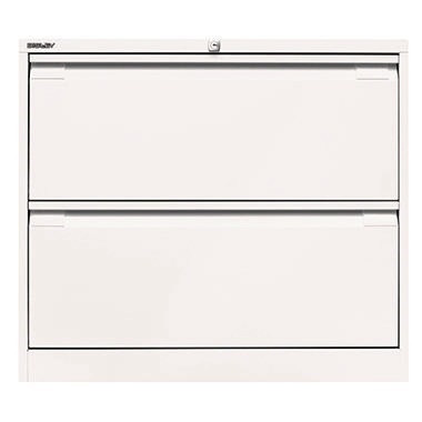 Bisley - das Original. Der Hängeregistraturschrank mit Griffleiste bietet in ein- oder doppelbahnigen Schubladen Platz für Ihre DIN A4 Mappen. Die Schubladen laufen leise auf kugelgelagerten Schienen und sind mit einem geschlossenen Boden und Doppelauszugssperre ausgestattet. Der 100 % Auszug gewährt Zugang zum gesamten Schubladeninhalt, der sich durch die in der Griffleiste integrierten Etikettenfenster einfach identifizieren lässt. · Verwendung für Papierformat: DIN A4 · Anzahl der Bahnen: 2-bahnig · Werkstoff: Stahl · Tragfähigkeit der Schublade: 60 kg · Schließung vorhanden: Ja · Maße: 80 x 71,1 x 62,2 cm (B x H x T) · Garantiedauer: 10 Jahre · Form des Griffes: Griffmulde · Farbe: verkehrsweiß · Auszugsperre vorhanden: Ja · Art des Auszuges: Vollauszug · Art der Schubladenführung: kugelgelagert · Anzahl der Hängeregistraturen: 2 Hängeregistraturen · Garantie gewährt: Ja