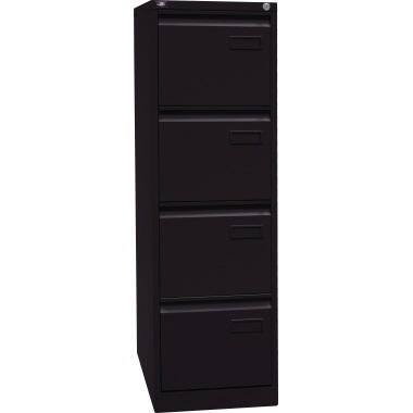 Leichtgängige Laufschienen, doppelbahnig, geschweißte Konstruktion, geschlossener Wannenboden, Etikettenfenster, 200 unterschiedliche Schlossnummern. · Form des Griffes: Griffmulde · Garantie gewährt: Ja · Werkstoff: Stahl · Verwendung für Papierformat: DIN A4 · Tragfähigkeit der Schublade: 25 kg · Schließung vorhanden: Ja · Maße: 41,3 x 132,1 x 62,2 cm (B x H x T) · Anzahl der Bahnen: 1-bahnig · Farbe: schwarz · Auszugsperre vorhanden: Ja · Art des Auszuges: Vollauszug · Art der Schubladenführung: kugelgelagert · Anzahl der Hängeregistraturen: 4 Hängeregistraturen · Garantiedauer: 5 Jahre