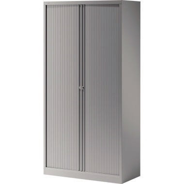 Die Rolladentüren können im geöffneten Zustand komplett in die Seitenführung geschoben werden, hierdurch hat man auf den gesamten Schrankinhalt zugriff. Das Schloss verriegelt die Flügeltüren über einen Einpunkt Schließmechanismus. Fachböden höhenverstellbar. Mit Höhenausgleichsfüssen zum Ausgleich von eventuellen Bodenunebenheiten. Robuster geschweißter Korpus.