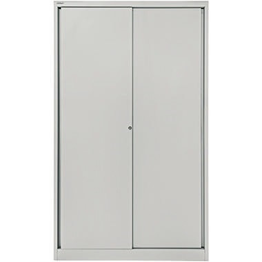 Ordner und Unterlagen verschwinden hinter den geräuscharm laufenden, abschließbaren Schiebetüren. Die mit den Führungsschienen abschließende Bodenplatte ermöglicht ein barrierefreies Be- und Entladen. Bisleys neuer Schiebetürenschrank der Serie ECO ist mit seiner geringen Stelltiefe die perfekte preisgünstige Alternative bei kleinem Raumangebot. · Garantiedauer: 5 Jahre · Werkstoff: Stahl · Tiefe: 430 mm · Schließung vorhanden: Ja · Maße: 120 x 198 x 43 cm (B x H x T) · Höhe: 1.980 mm · Form des Griffes: seitlicher Eingriff · Farbe: lichtgrau · Breite: 1.200 mm · Art der Gestelloberfläche: lackiert · Anzahl der Ordnerhöhen: 5 Ordnerhöhen · Anzahl der Fachböden: 4 Fachböden · Garantie gewährt: Ja