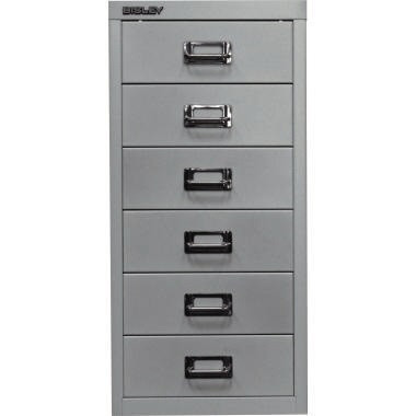 Die elegante Lösung für Platzsparer. Der Schubladenschrank der 29er Serie bietet Platz für Ihre Unterlagen. Beschichtete Etikettenhalter und Griffe auf allen Schubladen prägen das beliebte Design der MultiDrawerT. · Rollen vorhanden: Nein · Garantie gewährt: Ja · Schließung vorhanden: Nein · Werkstoff: Stahl · Maße: 27,9 x 59 x 38 cm (B x H x T) · Höhe: 860 mm · Höhe der Schublade: 87 mm · Garantiedauer: 5 Jahre · Anzahl der Schubfächer: 6 Schubfächer · Form des Griffes: Bügelgriff · Tiefe: 380 mm · Art des Auszuges: Vollauszug · Auszugsperre vorhanden: Nein · Breite: 279 mm · Farbe des Griffes: chrom · Farbe des Sockels: schwarz · Farbe: silber