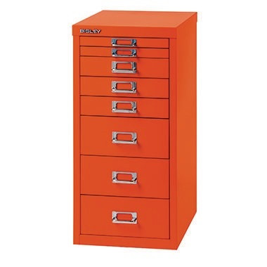 Die elegante Lösung für Platzsparer. Der Schubladenschrank der 29er Serie bietet Platz für Ihre Unterlagen. Chrombeschichtete Etikettenhalter und Griffe auf allen Schubladen prägen das beliebte Design der MultiDrawerT. · Höhe der Schublade: 2 x 25, 3 x 51, 3 x 102 mm · Garantiedauer: 5 Jahre · Werkstoff: Stahl · Werkstoff des Korpus: Stahl · Werkstoff der Front: Stahl · Schließung vorhanden: Nein · Maße: 27,9 x 59 x 38 cm (B x H x T) · Anzahl der Schubfächer: 8 Schubfächer · Form des Griffes: Bügelgriff · Rollen vorhanden: Nein · Farbe: orange · Farbe des Griffes: chrom · Auszugsperre vorhanden: Nein · Art des Auszuges: Vollauszug · Garantie gewährt: Ja