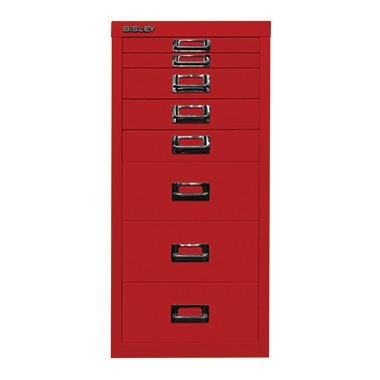 Die elegante Lösung für Platzsparer. Der Schubladenschrank der 29er Serie bietet Platz für Ihre Unterlagen. Chrombeschichtete Etikettenhalter und Griffe auf allen Schubladen prägen das beliebte Design der MultiDrawerT. · Maße: 27,9 x 59 x 38 cm (B x H x T) · Rollen vorhanden: Nein · Schließung vorhanden: Nein · Werkstoff der Front: Stahl · Anzahl der Schubfächer: 8 Schubfächer · Werkstoff: Stahl · Garantie gewährt: Ja · Werkstoff des Korpus: Stahl · Garantiedauer: 5 Jahre · Form des Griffes: Bügelgriff · Farbe: kardinalrot · Farbe des Griffes: chrom · Auszugsperre vorhanden: Nein · Art des Auszuges: Vollauszug · Höhe der Schublade: 2 x 25, 3 x 51, 3 x 102 mm