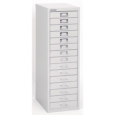 Die elegante Lösung für Platzsparer. Der Schubladenschrank der 39er Serie bietet Platz für Ihre Unterlagen. Chrombeschichtete Etikettenhalter und Griffe auf allen Schubladen prägen das beliebte Design der MultiDrawerT. · Garantiedauer: 5 Jahre · Werkstoff des Korpus: Stahl · Werkstoff der Front: Stahl · Schließung vorhanden: Nein · Rollen vorhanden: Nein · Maße: 27,9 x 86 x 38 cm (B x H x T) · Höhe der Schublade: 51 mm · Werkstoff: Stahl · Form des Griffes: Bügelgriff · Farbe: silber · Farbe des Sockels: schwarz · Farbe des Griffes: chrom · Auszugsperre vorhanden: Nein · Anzahl der Schubfächer: 15 Schubfächer · Garantie gewährt: Ja · Art des Auszuges: Vollauszug