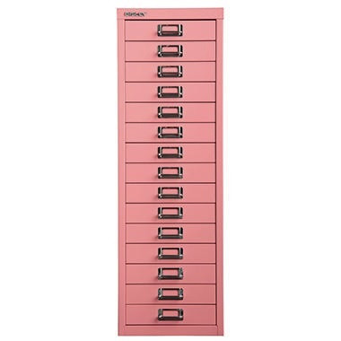 Die elegante Lösung für Platzsparer. Der Schubladenschrank der 39er Serie bietet Platz für Ihre Unterlagen. Chrombeschichtete Etikettenhalter und Griffe auf allen Schubladen prägen das beliebte Design der MultiDrawerT. · Garantiedauer: 5 Jahre · Werkstoff: Stahl · Schließung vorhanden: Nein · Werkstoff der Front: Stahl · Rollen vorhanden: Nein · Maße: 27,9 x 86 x 38 cm (B x H x T) · Höhe der Schublade: 51 mm · Art des Auszuges: Vollauszug · Anzahl der Schubfächer: 15 Schubfächer · Auszugsperre vorhanden: Nein · Werkstoff des Korpus: Stahl · Farbe des Griffes: chrom · Farbe des Sockels: schwarz · Farbe: pink · Form des Griffes: Bügelgriff · Garantie gewährt: Ja