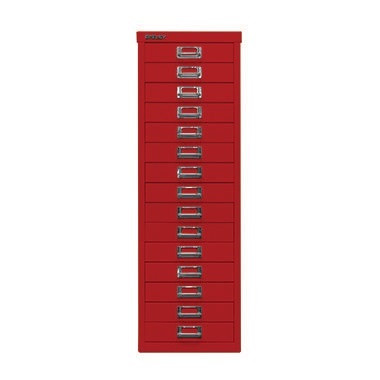 Die elegante Lösung für Platzsparer. Der Schubladenschrank der 39er Serie bietet Platz für Ihre Unterlagen. Chrombeschichtete Etikettenhalter und Griffe auf allen Schubladen prägen das beliebte Design der MultiDrawerT. · Form des Griffes: Bügelgriff · Höhe der Schublade: 51 mm · Werkstoff: Stahl · Werkstoff des Korpus: Stahl · Werkstoff der Front: Stahl · Schließung vorhanden: Nein · Rollen vorhanden: Nein · Maße: 27,9 x 86 x 38 cm (B x H x T) · Art des Auszuges: Vollauszug · Garantiedauer: 5 Jahre · Anzahl der Schubfächer: 15 Schubfächer · Auszugsperre vorhanden: Nein · Farbe des Griffes: chrom · Farbe des Sockels: schwarz · Farbe: kardinalrot · Garantie gewährt: Ja