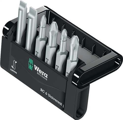 bestückt mit zähharten Bits · geeignet für Handbetätigung und Antrieb mit Akku-Schraubern · mit Direktanschluss für Akku-Schrauber Inhalt Art.-Nr. 40 00 829 690: je 1 Bit für Schlitzschrauben Gr. 5,5 - 6,5 mm je 1 Bit für Schrauben mit Kreuzschlitz (PH) Gr. 1 - 2 je 1 Bit für Schrauben mit Kreuzschlitz (PZD) Gr. 1 - 2 Bitlänge jeweils 50 mm