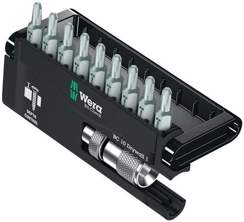 speziell auf die Anforderungen des Trockenbaus abgestimmter Inhalt Inhalt: 1 Bit-Halter mit stufenlos einstellbarer Schraubtiefe (ermöglicht das bündige Verschrauben) 9 Trockenbaubits für Schrauben mit Kreuzschlitz (PH) Gr. 2