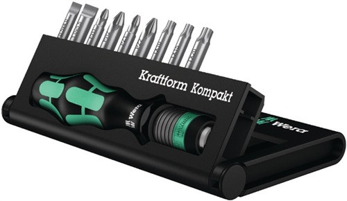 bestückt mit zähharten Bits mit Torsionszone und Kraftform-Griff mit Schnellwechselfutter Rapidaptor · für die Verschraubung per Hand Besondere Produktvorteile: · extrem raumsparend - daher besonders geeignet als Montage- und Servicewerkzeug für die Kitteltasche · sehr leichte und robuste Box Inhalt: 1 Kraftform-Handgriff mit Rapidaptor-Schnellwechselfutter je 1 Torsion-Bit für Schlitzschrauben Gr. 0,5 x 4,0 - 1,0 x 5,5 mm je 1 Torsion-Bit für Schrauben mit Kreuzschlitz (PH) Gr. 1/25 mm - 2/25 mm je 1 Torsion-Bit für Schrauben mit Kreuzschlitz (PZD) Gr. 1/25 mm - 2/25 mm je 1 Bit für Schrauben mit Innen-TORX®-Profil Gr. T 10 - T 15 - T 20